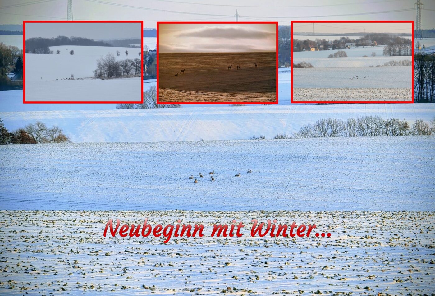 Stellt euch vor, der Winter hat uns doch tatsächlich eingeholt. Das, was für die ältere Generation in Kindertagen noch ganz normaler Alltag zu dieser Jahreszeit war, ist rund um das vergangene Wochenende schon fast ein Weltuntergang oder eine Wetterkatastrophe gewesen, wenn man den Ausführungen der “Wetterfrösche“ in Funk und Fernsehen Glauben schenkte. Schon mehrere Tage von den Medien aller Art verkündet, hatte es doch tatsächlich ausgedehnt und reichlich geschneit… Vielerorts ganz schön heftig, was da runterkam und sicher angesichts des Klimawandels nicht mehr ganz so alltäglich. Doch außergewöhnlich oder gar unnormal sind diese Verhältnisse für einen mitteleuropäischen Winter nun auch wieder nicht gewesen. Das Wochenende gab Petrus dann die Gelegenheit, alles zu relativieren. Kalt war es nochmals, bitterkalt, doch herrlicher Wintersonnenschein und strahlend blauer Himmel ließen seit langer Zeit viele Winterspaziergänge beobachten und die Eisflächen auf den Teichen und Seen gut gefüllt sein. So mancher musste bestimmt erstmal ordentlich suchen, um Schlittschuh, Ski, oder Schlitten wieder flott zu machen. Tja und auch die heimische Tierwelt war bei solch tollem Wetter auf unseren Flächen anzutreffen…